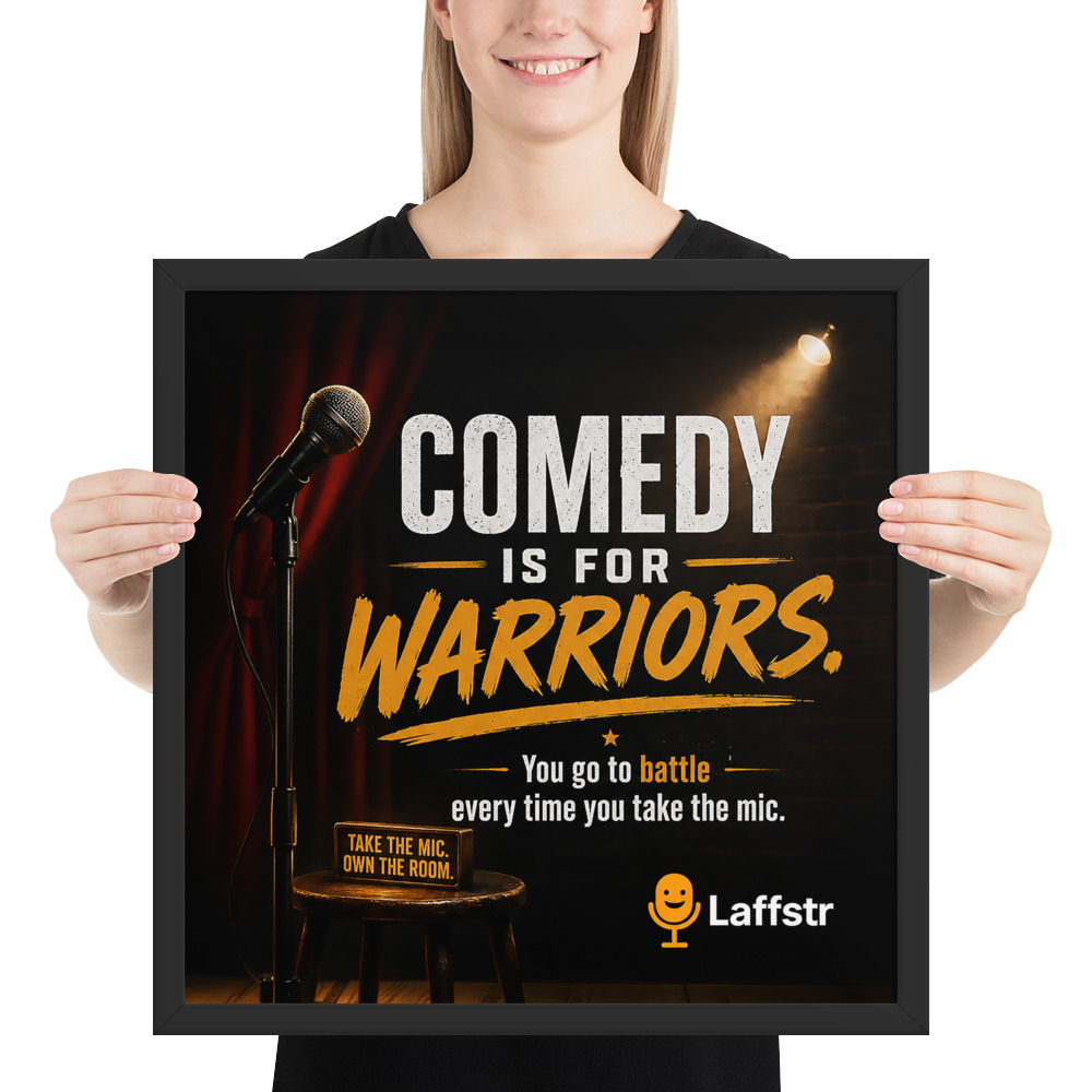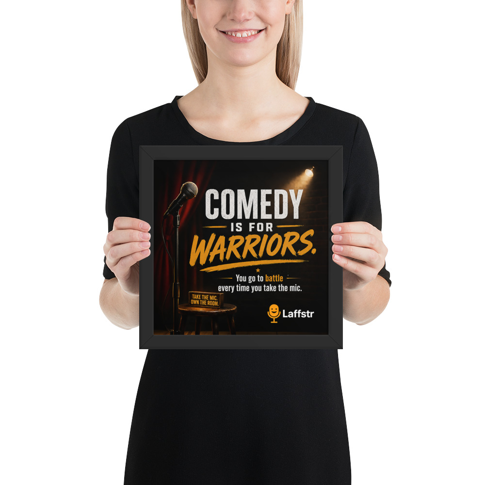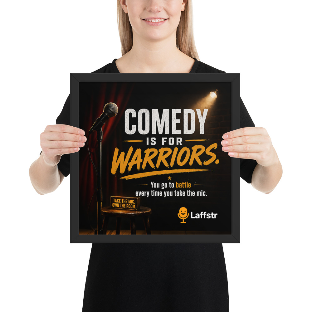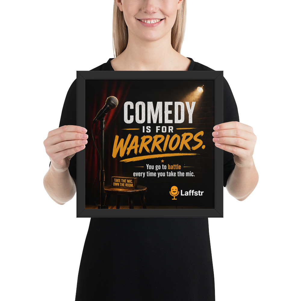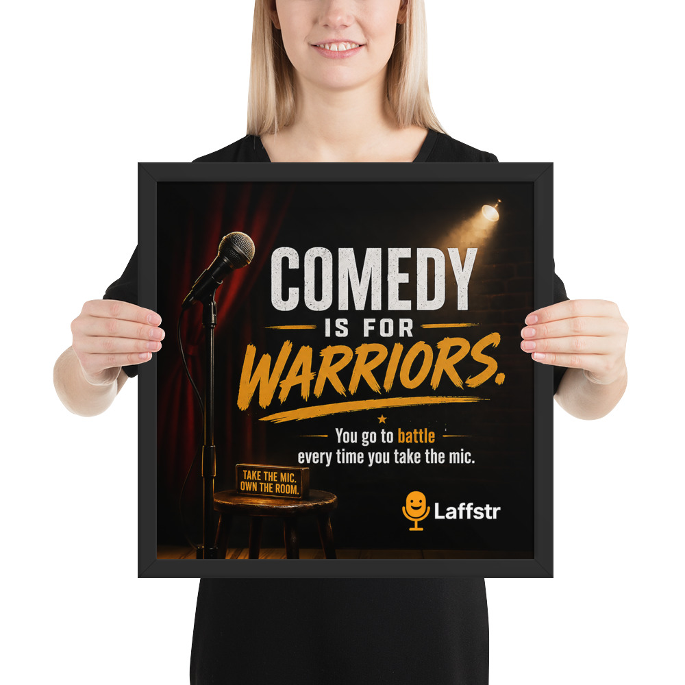 Stand-up comedy is not for the faint of heart. It takes courage to step up to the mic, test new material, face silence, handle hecklers, and come back stronger the next night. The “Comedy is for Warriors” framed poster is a powerful piece of inspirational comedy wall art created for beginning and intermediate comedians who need a daily reminder that success in comedy is built on bravery, persistence, and grit.